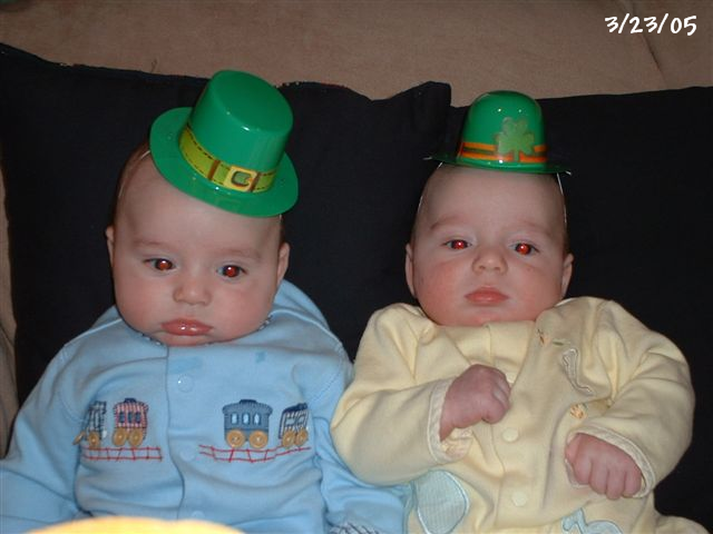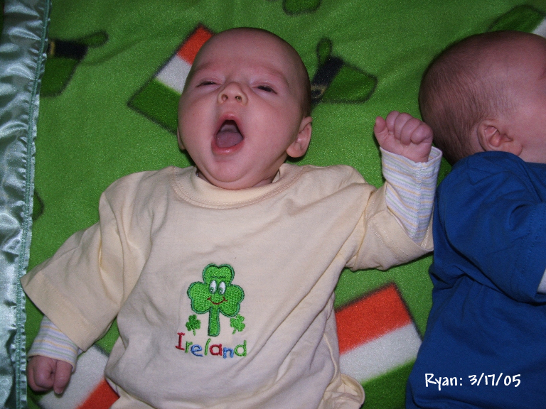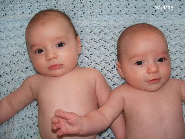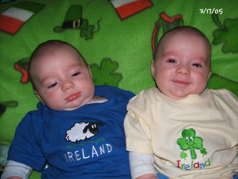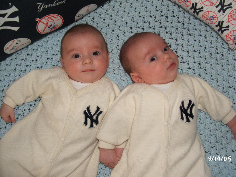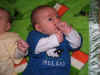 Kevin on the left and Ryan on right in their Polo outfits from Aunt Nina: 7 weeks old